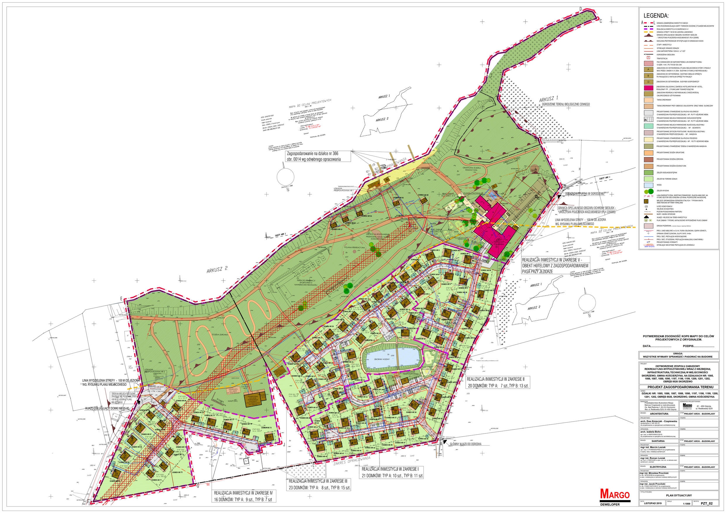 - obiektu hotelowego o przewidywanej powierzchni całkowitej ok. 4100 m2, z 5 domkami o pow. użytkowej 147m2